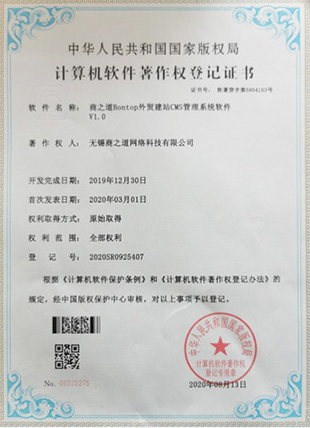 商之道网络是江苏省科技型中小企业,是无锡市互联网协会理事单位,无锡市软件行业协会会员单位,拥有自主知识产权23项,包括商之道建站CMS管理系统,外贸建站管理系统、企业站群管理系统及周边技术的自主研发,是一家国内建站的源头技术厂家。